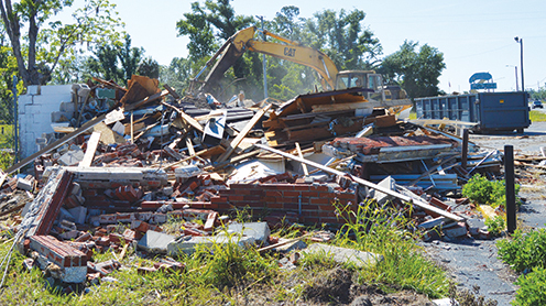 A front-end loader demolished the dilapidated brick and concrete block restaurant building located at 1700 S. Byron Butler Parkway (U.S. Hwy. 19) on Monday. Originally built in 1955, the commercial building housed Perry’s first Kentucky Fried Chicken, later was a pawn shop and thrift store and most recently operated as Barclay’s restaurant. The property was purchased in March by B&T Properties, Inc. of Perry and is being cleared for possible future economic development.