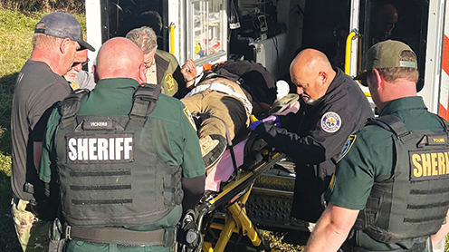 A would-be thief allegedly caught red-handed was hauled away in an ambulance after attempting to assault the property owners who defended themselves and put the man in a chokehold.