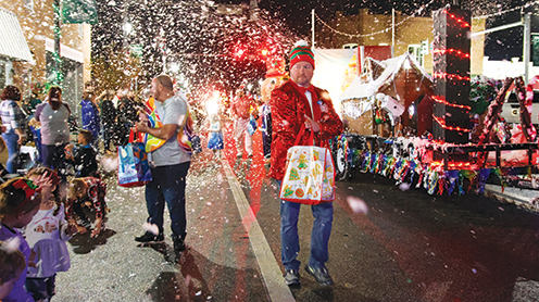 Christmas cheer rang out from every corner of downtown Perry Friday night during the Taylor County Historical Society’s annual Downtown Christmas on the Square celebration. The community event included the Lighted Christmas Parade coordinated by the Chamber of Commerce. Parade participants lit up Jefferson Street with a dazzling display of Christmas lights and costumes — and it even snowed! Nearly 200 good little boys and girls waited patiently in line to share their Christmas wishes with Santa.