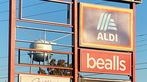 A new ALDI sign appeared in front of the Taylor Square Shopping Center on Hwy. 19 this week, where contractors are working on a major remodeling of the former Winn-Dixie supermarket location into an ALDI – one of the fastest-growing grocery stores in the United States. The conversion began in October and could reportedly take up to seven months.