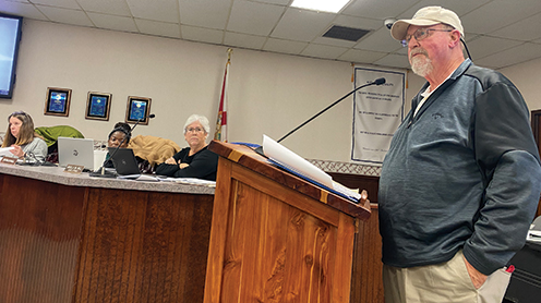Don Curtis, owner of The Forestry Company, expressed concerns about the school district’s proposal to raise the local sales tax by a half cent per dollar, citing, “so many people still hurting from the hurricanes,” as well as the economic impacts from mill closures, a recent increase in timberland property tax assessments and Florida Legislative proposals to shift property taxes to sales taxes statewide.